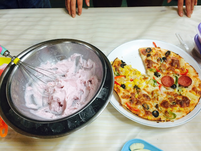 Then we sent the pizza into the oven and got started on the ice cream. We were all super shocked when our instructor told us we will be DOING IT BY HAND. And I was even more surprised by how good did tasted.